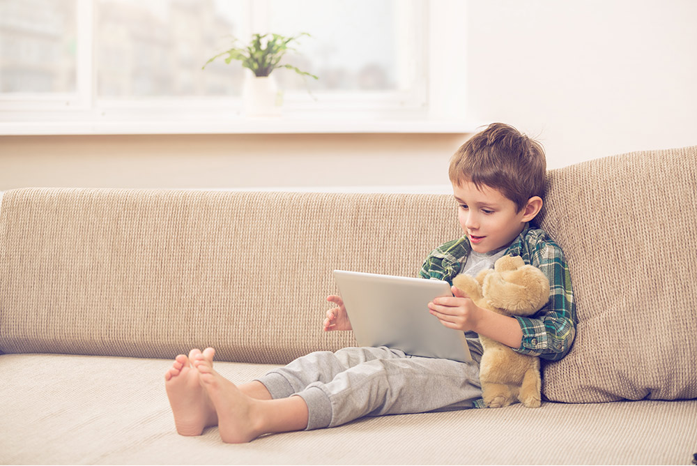 boy playing with digital tablet